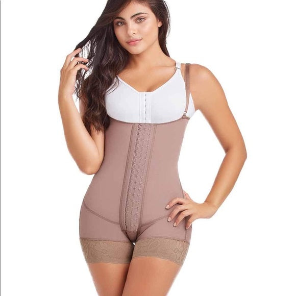 Control shaper with high compression provides firm control and gives a perfect molding in the waist and hips. Its design in cheek style allows it to be worn with shorts or short skirts. The cocoa color generates an optical effect so that it does not mark with the outerwear.